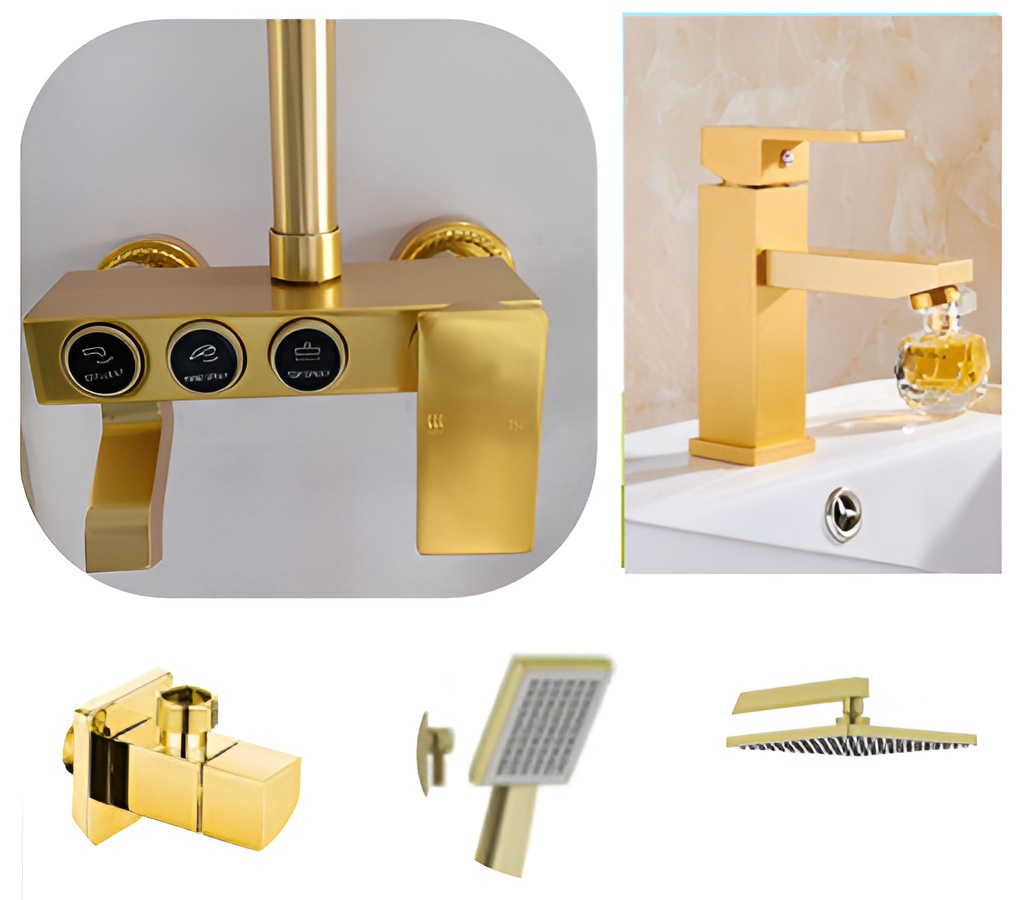 Be the first to review “Bath set in piano style Push button Golden shower”