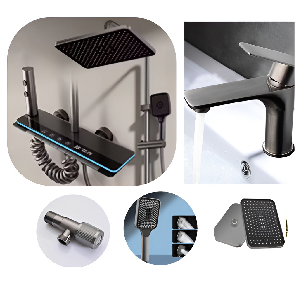 Bath set in piano style Without any electricity � � ⚡ Grey N-Line light & Temperature 🌡 meter